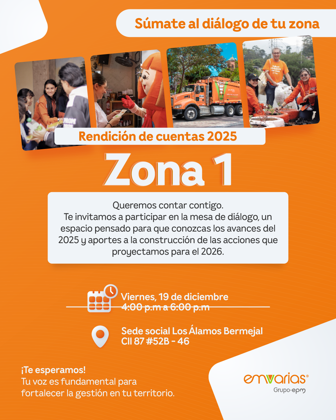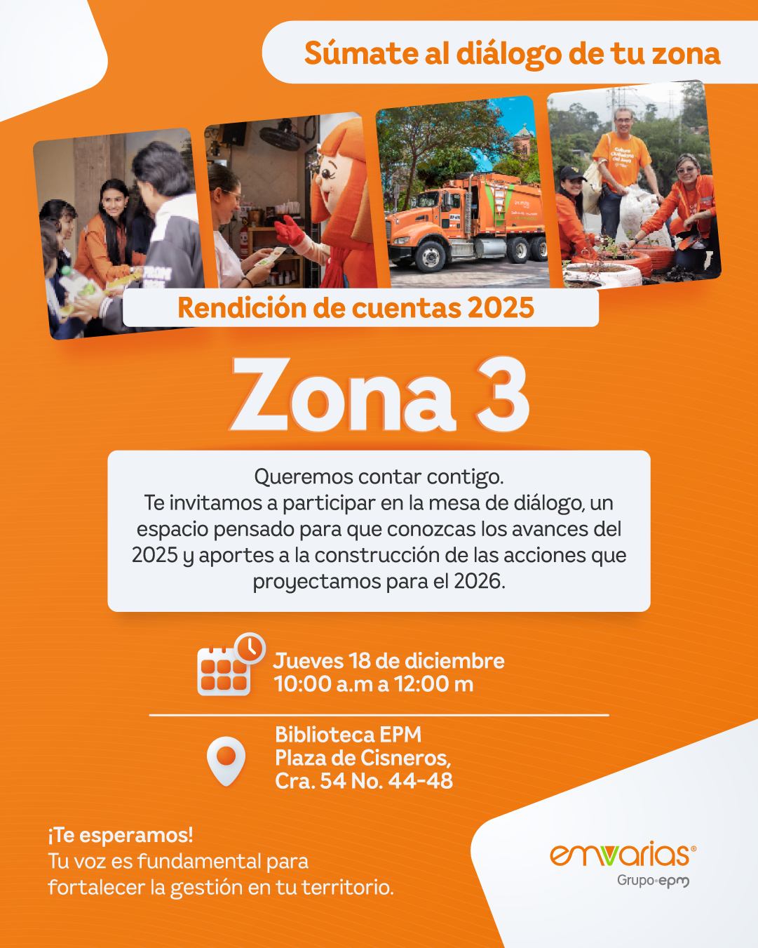 Objetivo: Mejorar el relacionamiento, dar a conocer Emvarias, hacer promoción de trámites y servicios e identificar las oportunidades de mejora en los trámites