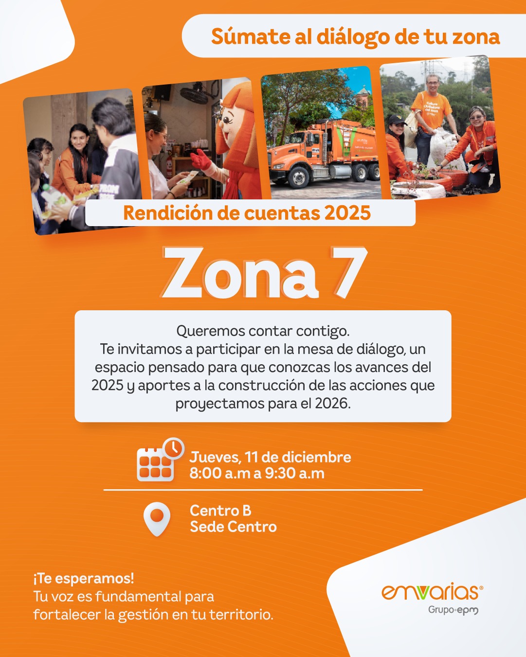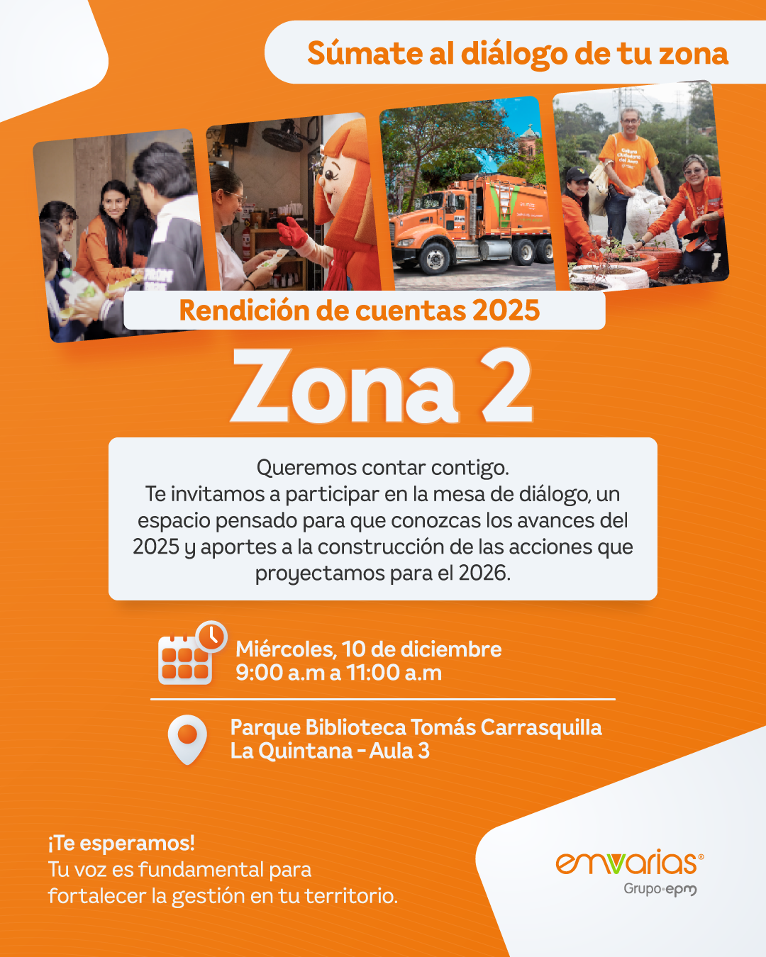 Objetivo: Mejorar el relacionamiento, dar a conocer Emvarias, hacer promoción de trámites y servicios e identificar las oportunidades de mejora en los trámites.